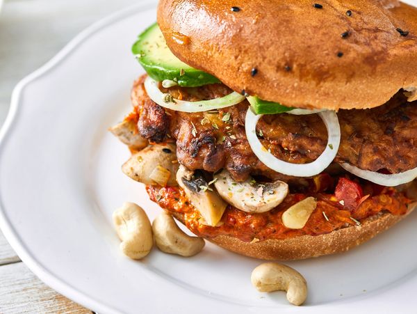A Juicy Grilled Burger with cucumbers l Parade, we specialize in crafting savory food bowls that are easy to eat and full of flavor. Each bowl is made with high-quality, fresh ingredients to ensure a delightful dining experience.